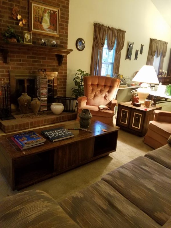 Very full house loaded with vintage everything 1950's - 80's. Tons of vintage costume jewelry, yard tools, bar ware, kitchen galore. Mostly 1960's and 70's furniture. World traveler, collector. Dozens of unusual global dolls (not baby dolls).