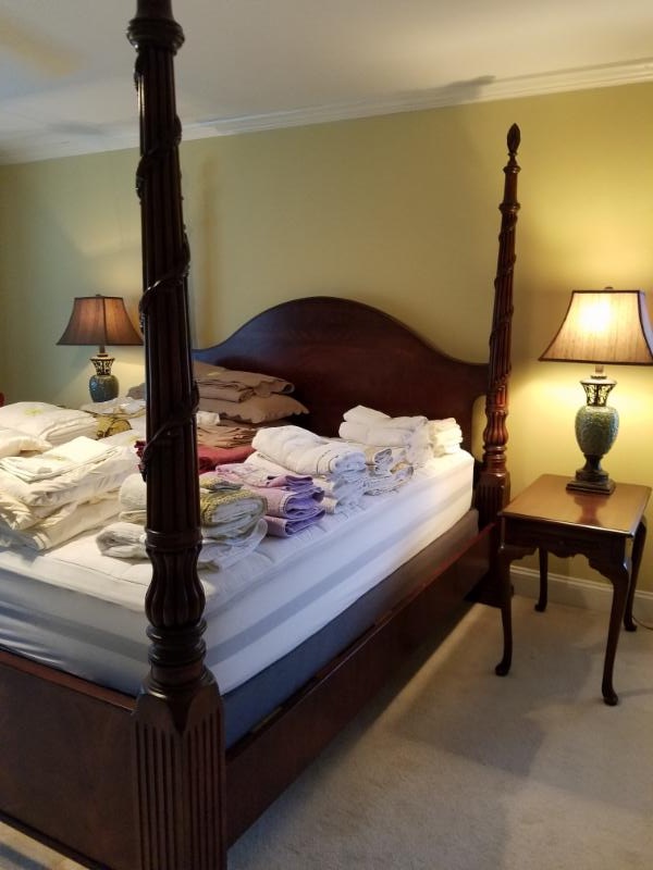 Household/Linens: 2 Dirt Devil upright vacs (pet features), heavy duty Dirt Devil car vac, Dyson upright vac, Haan floor sanitizer, Orek quick vac, cleaning and household supplies galore; King and queen sheet sets, king bedding, throw blankets, towels, step ladder