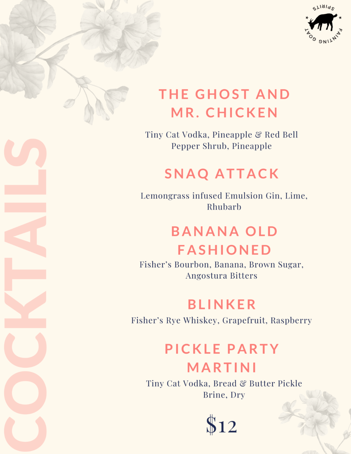 | Our Sister Company, more accurately known as our son Andrew's company; Fainting Goat Spirits hosts specialty cocktails every Saturday from 1-6pm.