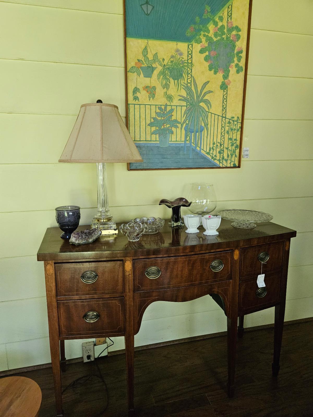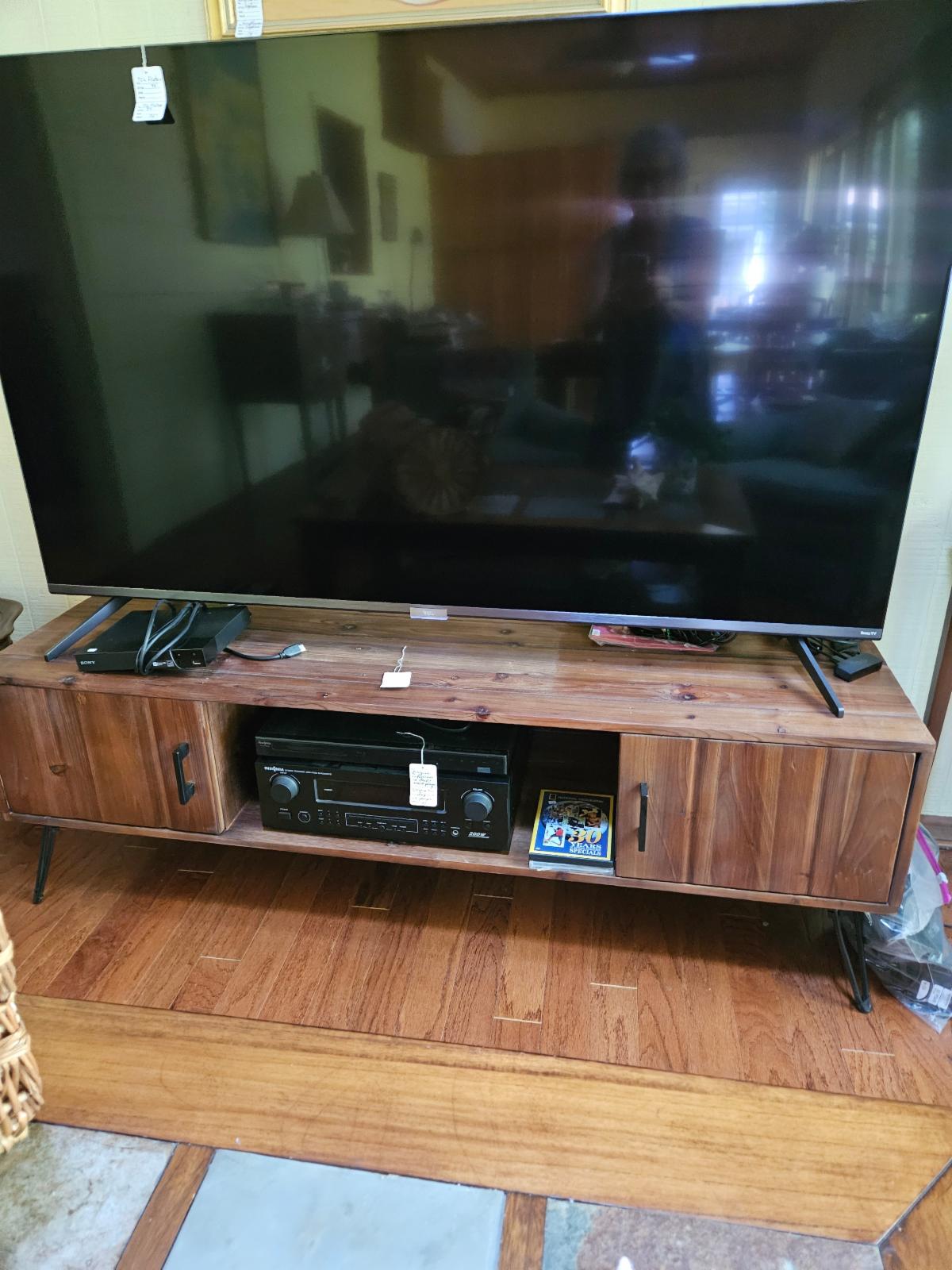 Lamps, all styles and ages plus Southwestern decor, Asian décor, throw pillows. 9x12 silk Pakastini carpet, approx 7x9 wool carpet. Other smaller throw rigs. Electronic equipment, large TCL ROKU flatscreen TV on low farm chic cabinet solid dark cedar, LPs, CDs, DVDs. Insignia rec/amp with CD player.