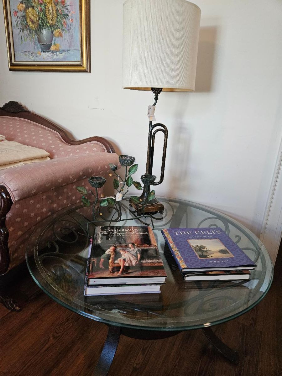 Small manmade silk throw rugs. Quality accessories – Asian, English etc. Framed prints and wall mirrors. Lamps, all styles and ages. Small flatscreen TV. Silk florals. All 50% off.