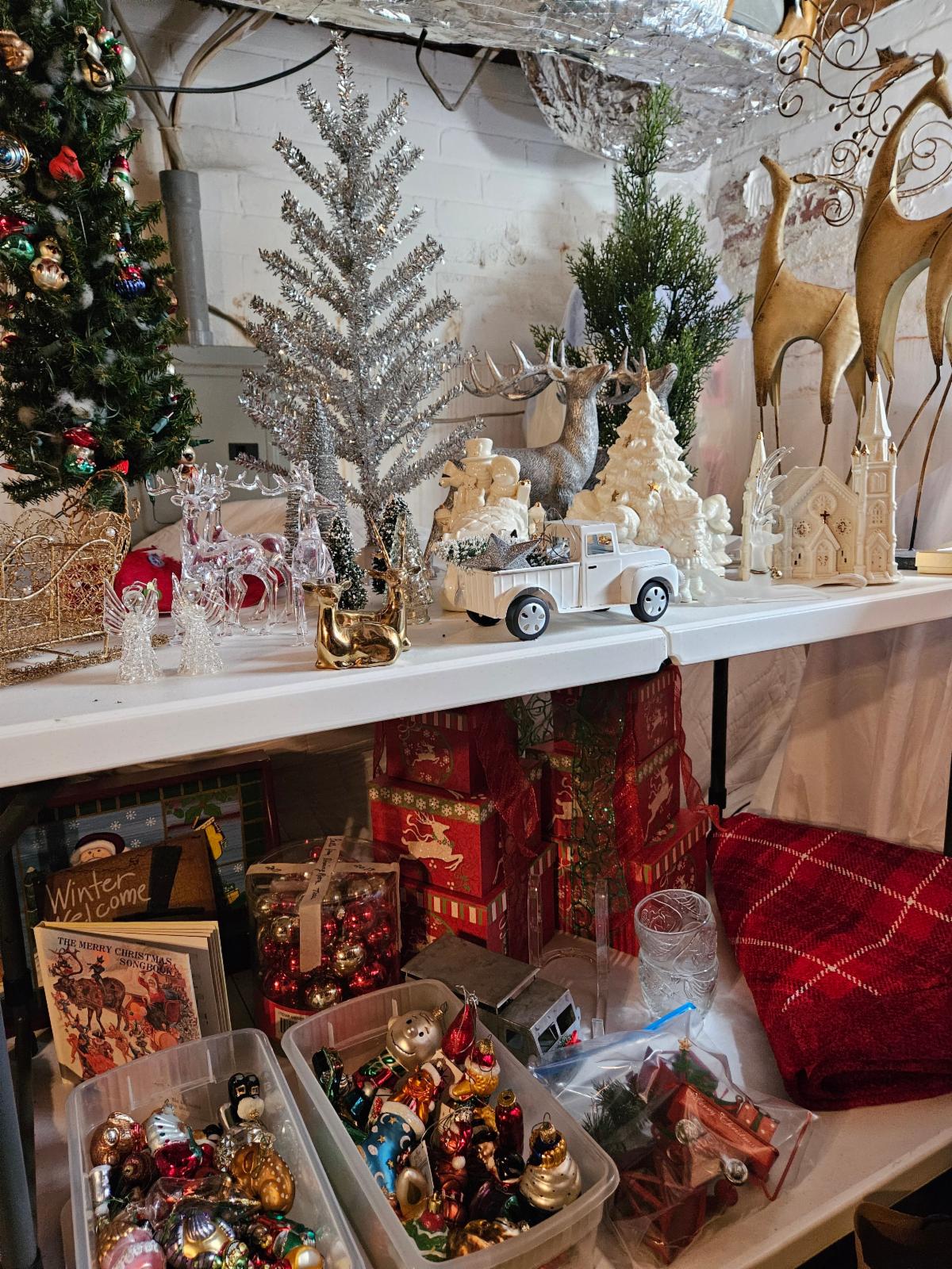 Exceptional and large selection of Christmas (décor, ornaments, clothes), over 50 blown glass ornaments including Christopher Radko and other designers, large display sleighs, seasonal including good Halloween and autumn. Outdoor blow mold items.
