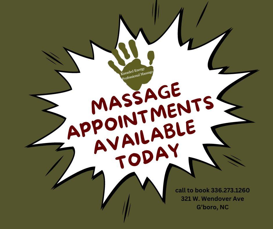 Come in this WEDNESDAY, THURSDAY OR FRIDAY for a 90 minute massage for only $110. (reg $125)