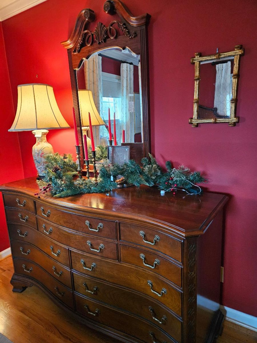 Kitchen/tabletop/barware …bake ware, cookware, gadgets, air fryer, 2 Keurigs, SodaStream, dishes, candleholders, casseroles, service for 8 Rogers 1847 silverplate flatware, vases. Variety of mirrors, artwork – some signed and numbered. Area rugs, floor lamps, lots of table lamps, silk florals, seasonal wreaths. Outdoor furniture, yard art, bird baths, planters, flowerpots, vases, grill, etc. Trimmer, blower, shop vac, fans, garden hand tools, yard tools, snow shovel, spreader, modular shelving, tiller, hoses and caddies, indoor step ladder. Christmas, seasonal and holiday: 4 ft. lighted flocked tree, accessories, ornaments, wreaths. Misc: cat condo, dehumidifier, pair folding patio chairs, baskets, SONY components with speakers, 2 Oreck vacs, nice queen bedding, leather handbags, clothes, boots and shoes.